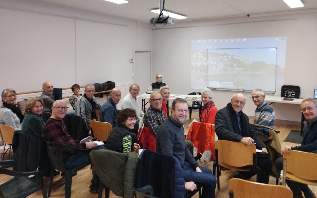 C’est dans la salle rose des associations mise à disposition gracieusement par la mairie de Pirey que débute à 08h30 notre assemblée générale 2025. 20 licencié(e)s sur 22 sont présents, le quorum est largement atteint, le président déclare l’assemblée ouverte. Suit dans l’attention générale, dans la bonne humeur et parfois avec un humour de bon aloi, l’exposé du rapport moral, du rapport d’activités 2025, du rapport financier et du rapport sur la sécurité. La santé de notre « petit » club, bientôt 45 ans…, et des licencié(e)s est bonne malgré l’âge moyen de 69 ans (!). Petite fierté, en 2026 notre effectif de féminines sera de 8 (soit 36% pour à peine 20 % au niveau national), on se rapproche de la parité !!!. Nous sommes revenus sur un événement marquant de cette année, le Tour de Franche-Comté en itinérance avec 15 participants : 900 km et 11000 mètres de dénivelés positifs en 9 étapes. L’objectif était de se rapprocher au plus près des limites des quatre départements (Territoire de Belfort, Haute-Saône, Doubs et Jura). Ce séjour s’est déroulé sous une météo très agréable, un peu caniculaire par moment (dérèglement climatique ???). Nous en avons profité pour visiter les villes étapes – Belfort, Luxeuil, Champlitte, Dole, Cuiseaux, Moirans-en-Montagne, Pontarlier et Maîche – le tout dans la bonne humeur et la convivialité.